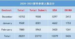 USACO第二场月赛已经结束,官方也公布了比赛结果、分数线及参赛人数,没有考好的同学也不要气馁, USACO第三场月赛将于2月16-19日举行 ,大家抓紧时间备考吧! USACO成绩查询 ...
