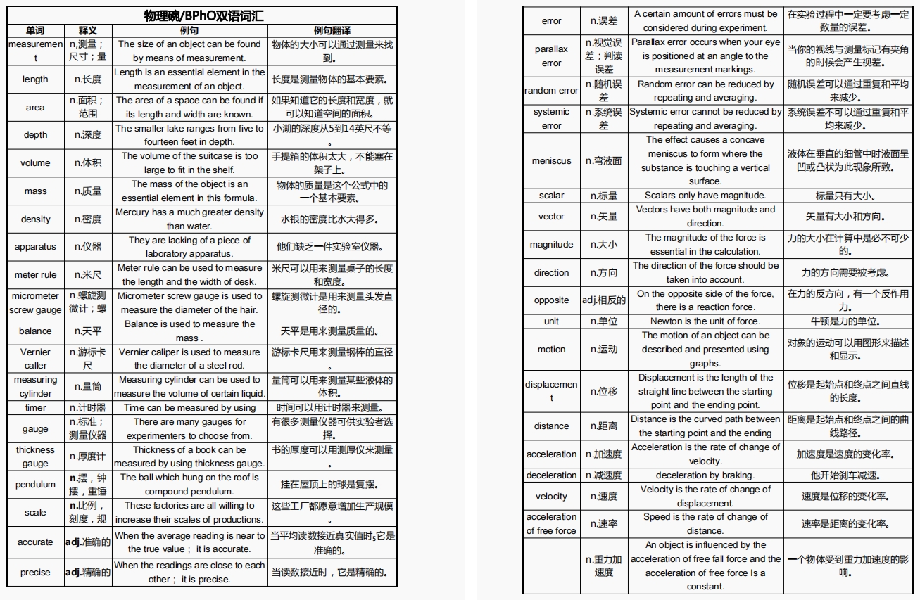 物理碗双语词汇