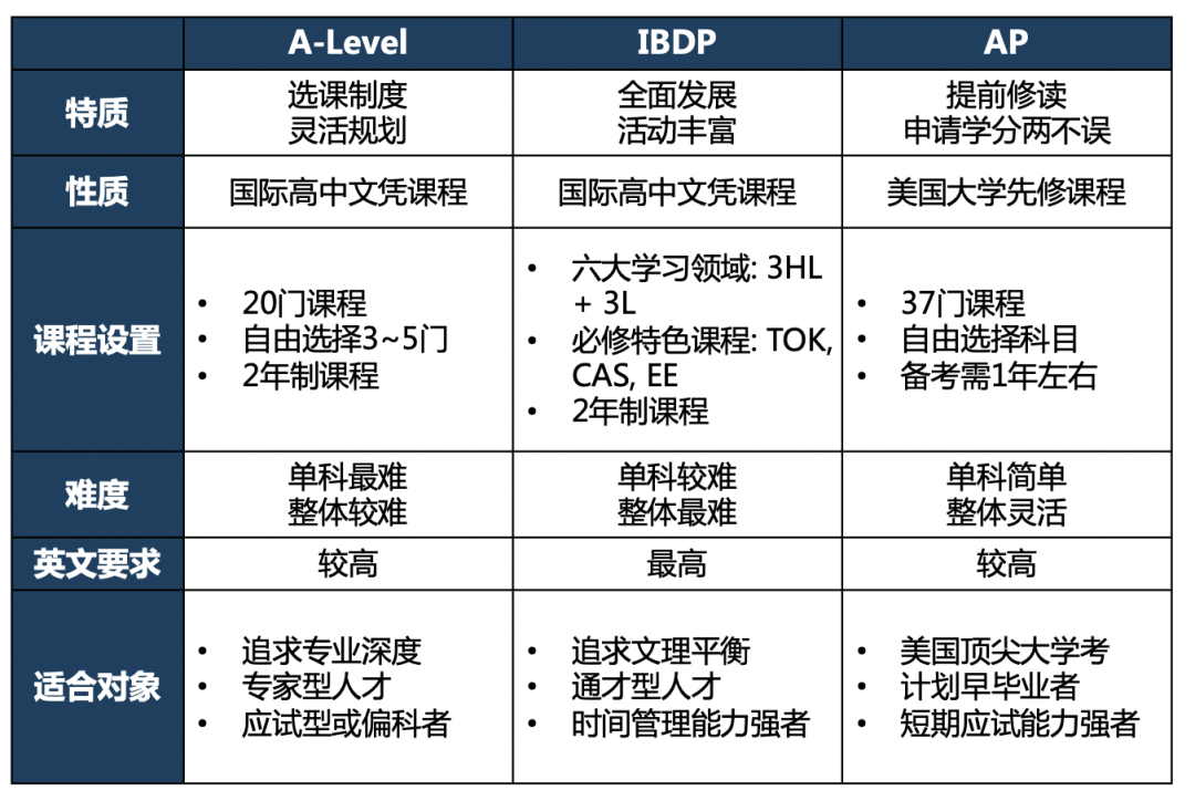 IB/AP/A-Level课程详细对比!终于懂了IB/AP/A-Level课程适合哪些学生!