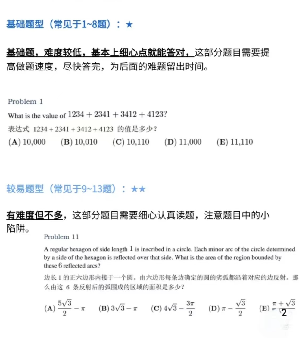 AMC10数学竞赛难度由浅入深,几乎有一半左右的中等及以上难度的题目,且考试时间是有限的!