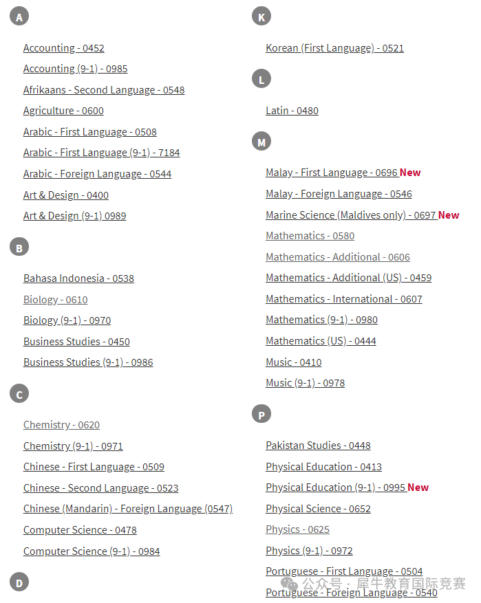 相比CIE和爱德思,牛津AQA考试局提供的科目数量相对较少,包括数学、英语、科学、地理、商务等比较常见的科目。