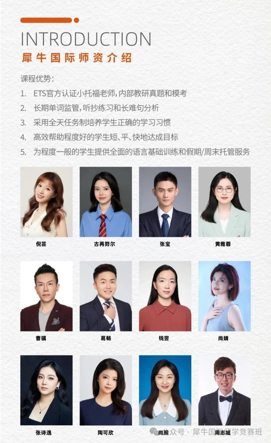 官方认证师资:犀牛小托福的授课老师均通过ETS托福官方考核,具备专业的教学能力和丰富的备考经验,为学员提供高质量的教学指导。