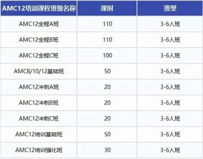 AMC12班型分为班型分为基础+冲刺+模考点评,三个阶段适合不同基础的学生学习;