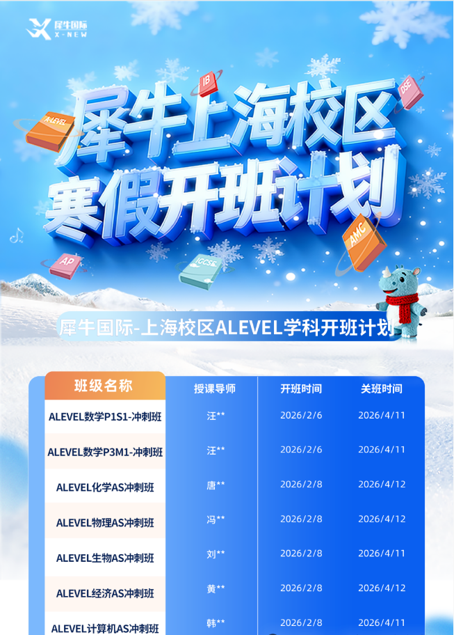 犀牛ALEVEL寒假班,牛剑导师团队带你弯道超车,大考轻松拿A*!