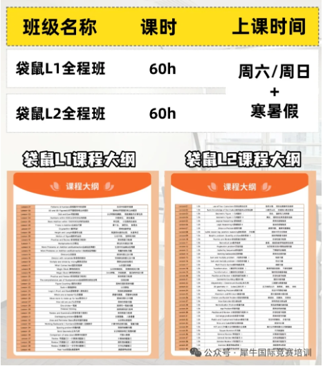 犀牛针对袋鼠竞赛等级L1、L2开设直通车课程,线上线下双轨教学辅导,课程班型3~8人小班,最大化保证每个学生都能被老师关注到。