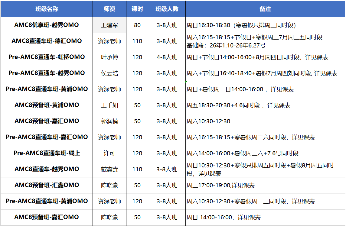 AMC8培训班:适合G6-8年级有基础的学生!分为基础班、强化班、冲刺班,具体根据前测卷及基础分配合适班型!
