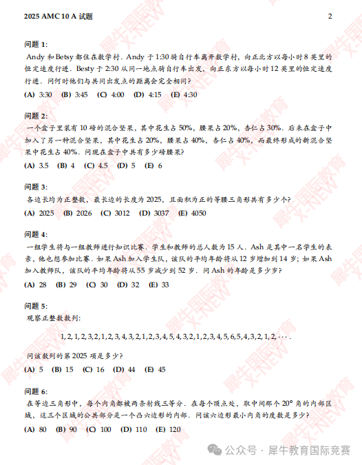根据多版真题的梳理,犀牛总结出2025年AMC10竞赛电子版真题,备考B卷的同学们,考前一定要刷!此外犀牛AMC竞赛教研组第一时间根据真题出了AMC10竞赛解析,需要的同学们可免费领取!