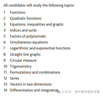 CIE考试局IG数学考试内容