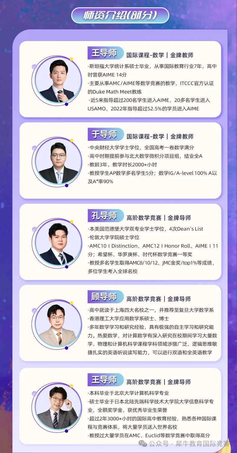 犀牛袋鼠竞赛培训、澳洲AMC竞赛培训、AMC竞赛培训课程师资团队优质,毕业于清北复交港理工等名校,数学竞赛教学经验丰富的老师团队带教,可以中英双语/全英授课,能够寓教于乐,通过袋鼠竞赛建立数竞体系!