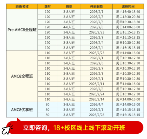 - 【AMC8班级人数】:3~8人班,或1v1辅导