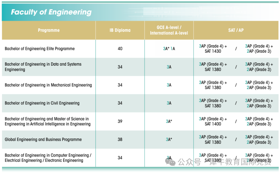 精英工程:要求从3A→3A1A*,是本次涨幅最大的专业,其他工程专业门槛也普遍提升,需3A*–3A。