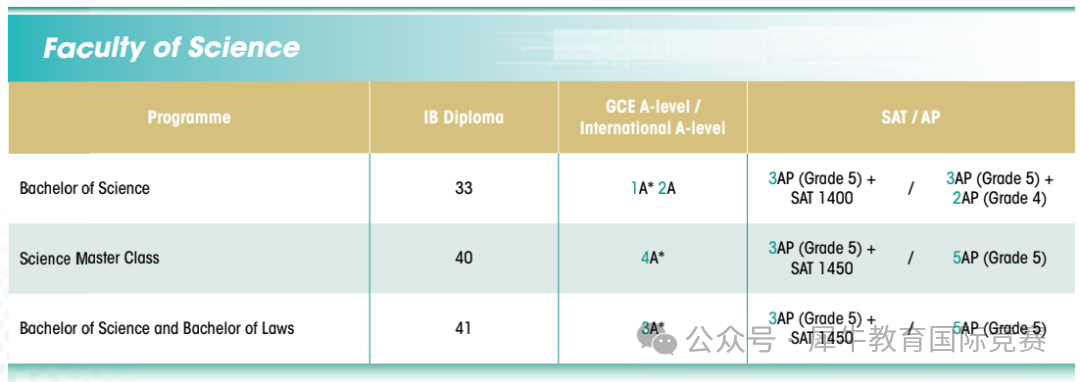 教育与理学士:A-Level从3A→1A*2A,IB/SAT要求同步上涨。其他教育项目为:3A
