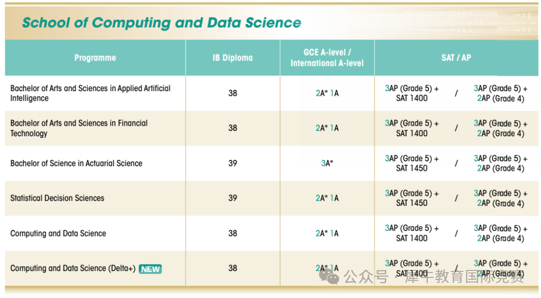 26fall增加了一个新专业——计算机与数据科学(Detla+),目前Alevel要求:2A*1A。