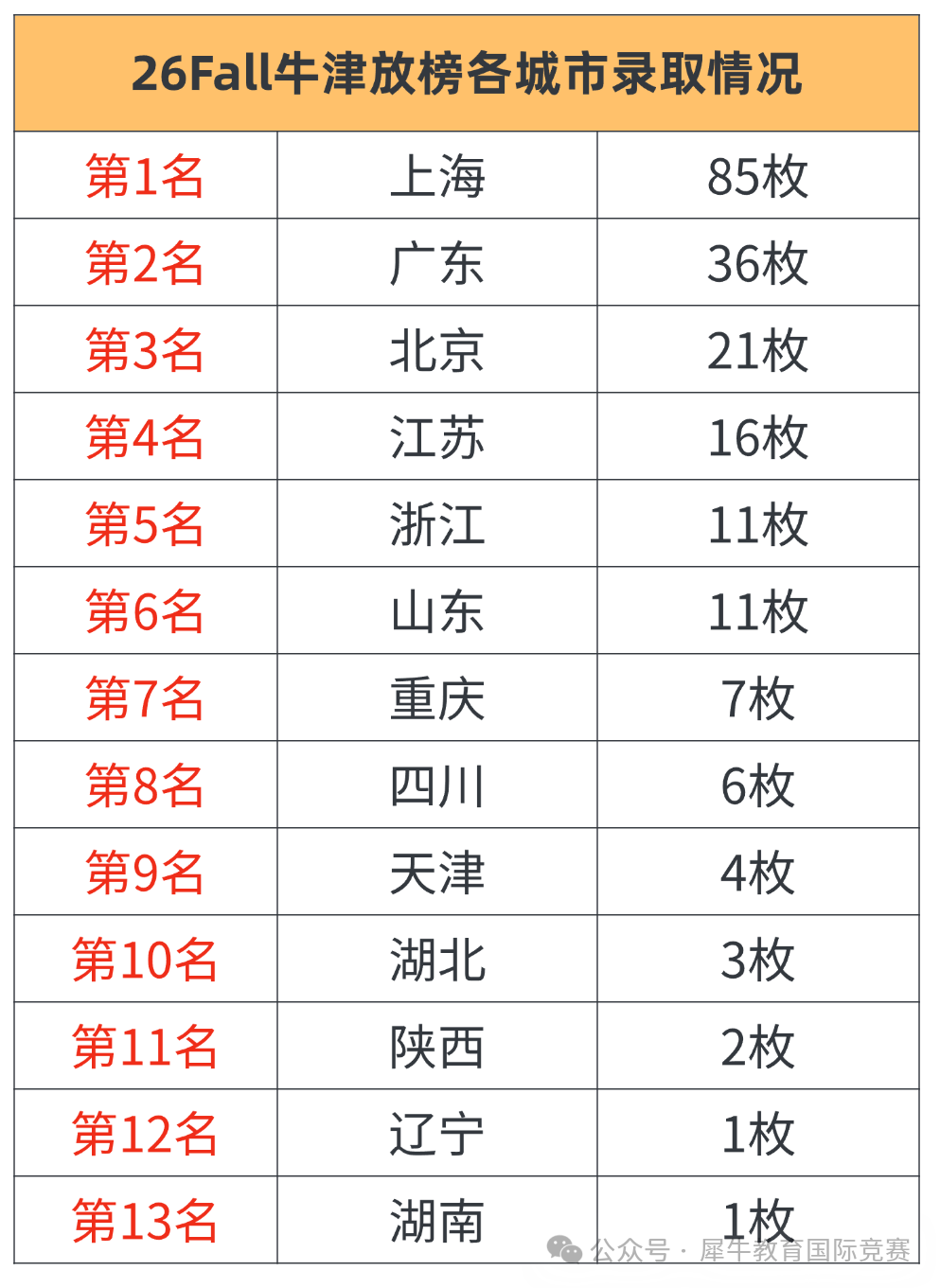 摘要:牛津大学26Fall13号正式开始放榜,据不完全统计,目前国内收到200+Offer,快来看看这些Offer花落谁家?G5学校什么时候放榜,各位家长和同学们及时关注! 牛津大学26Fall放榜情况 牛津大