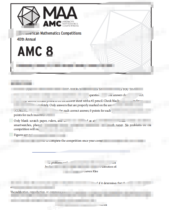 2026年AMC8竞赛已经考完啦,你家孩子发挥的怎么样?犀牛老师第一时间给大家整理了高清完整版的AMC8真题以及答案解析,中英版本都有,需要的宝子们添加微信xnew018免费领取~同时也为大家整理了AMC8评分规则/出分时间/成绩查询方式/获奖分数线等等!