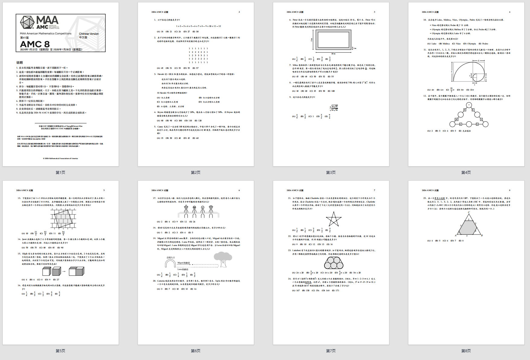 2026年AMC8数学竞赛真题(网盘免费领取)