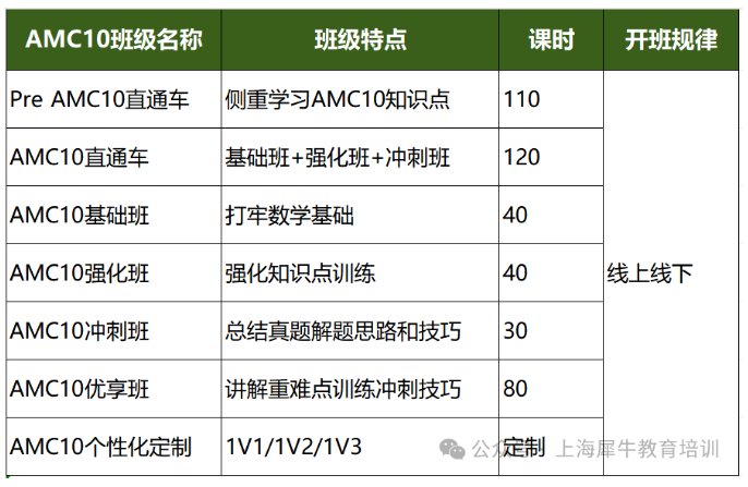 AMC10长线班也就是AMC10直通车课程,分为基础班,强化班和冲刺班。