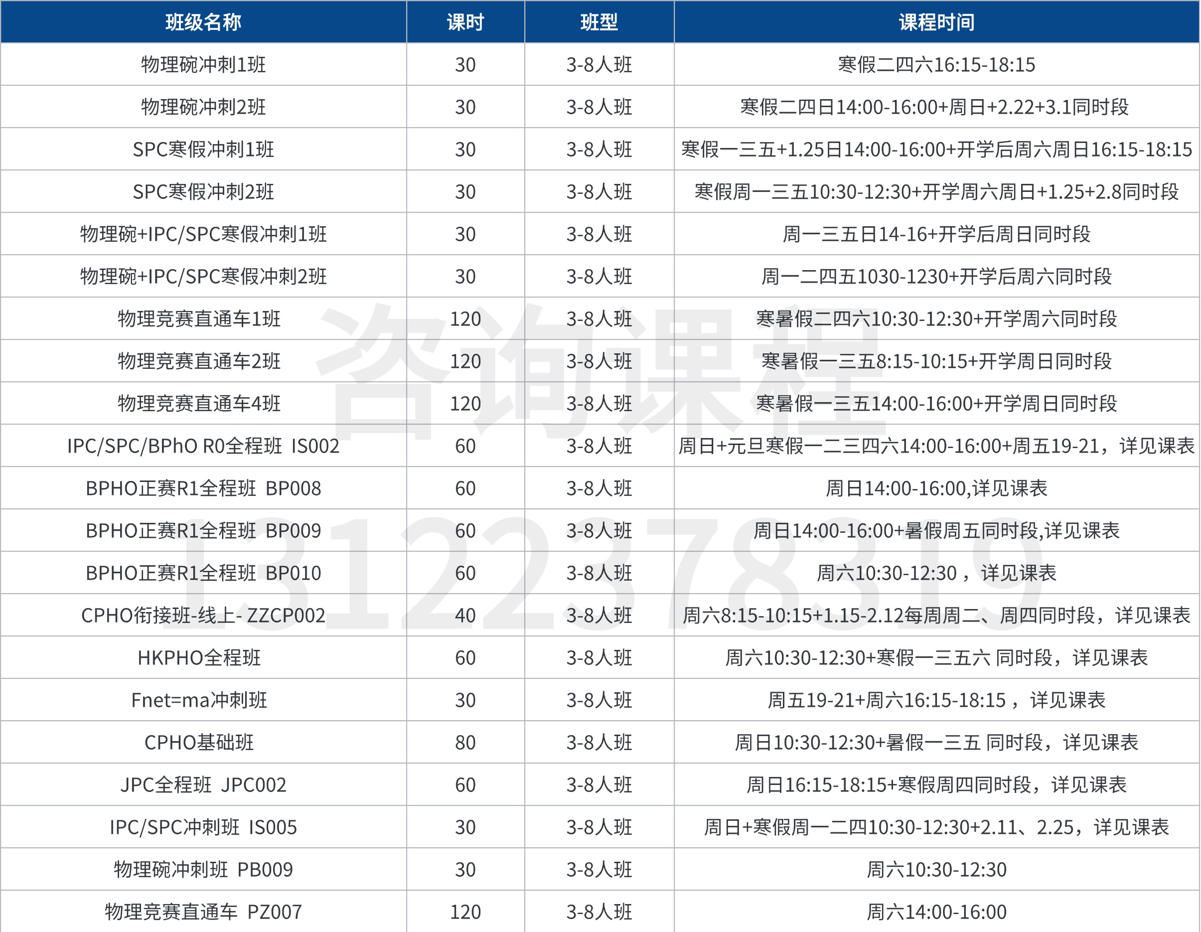 SPC&IPC综合全程班:G9-10备战BPhO学生,衔接前置赛事知识点,筑牢竞赛根基。