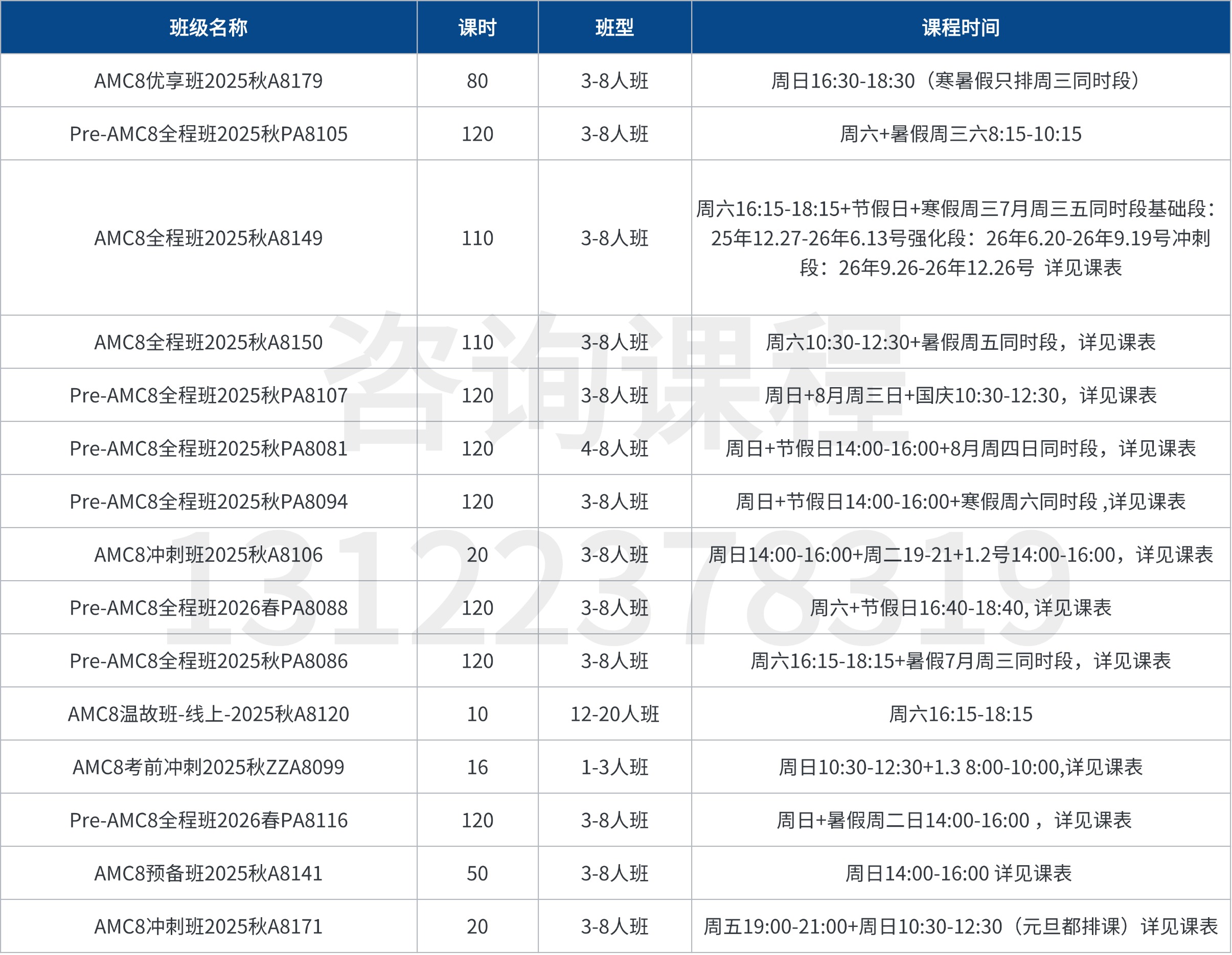 师资保障:多年PreAMC8/AMC8教学经验,均为海内外名校数学专业背景