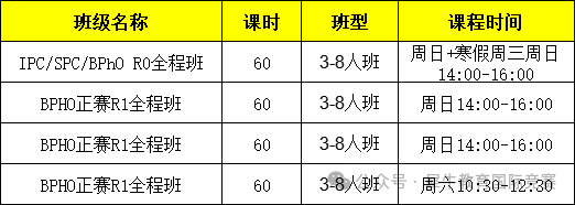 近期BPHO竞赛开班安排,全年滚动开班......