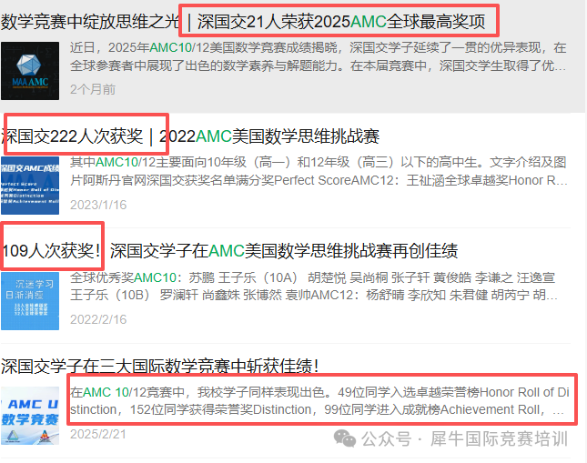 深国交每年会送孩子们参加AMC10竞赛,并且超过百人获奖。另外,像是贝赛思、实验学校高中园,万科梅沙书院等尖国际学校都鼓励学生参赛,提升背景。
