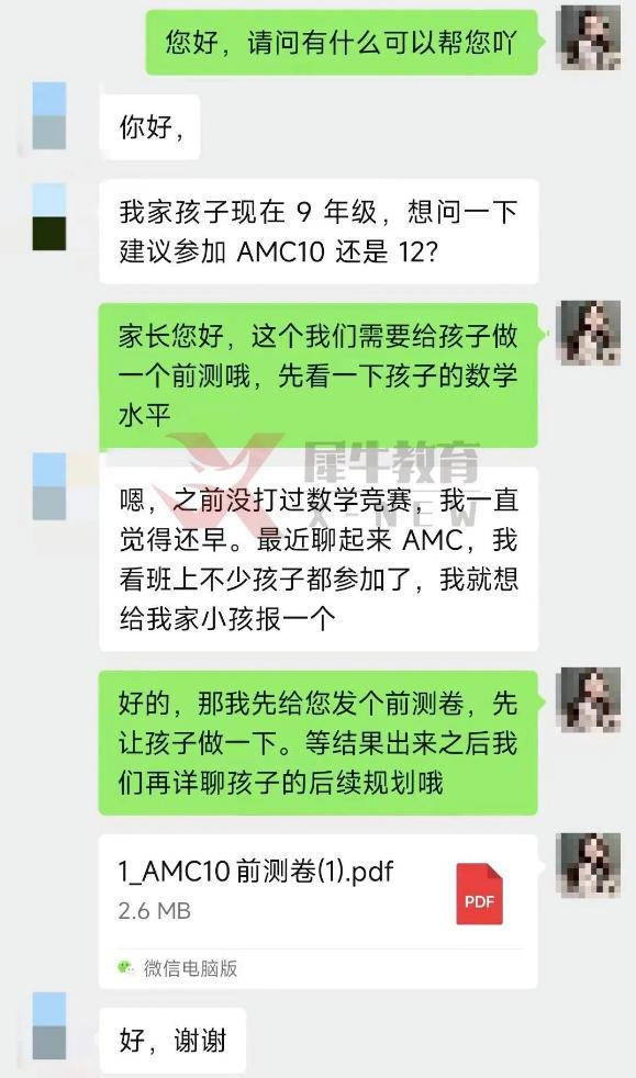 若家长和学生对AMC10/12竞赛参赛能力要求存在疑惑,可联系我们获取前测试卷。此外,我们的竞赛指导教师将结合测评结果,量身定制契合学生的竞赛备考方案。