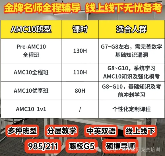 犀牛AMC10培训课程,自研教材讲义,线上线下开班授课,超多AMC10课程班型适合不同数学基础同学。