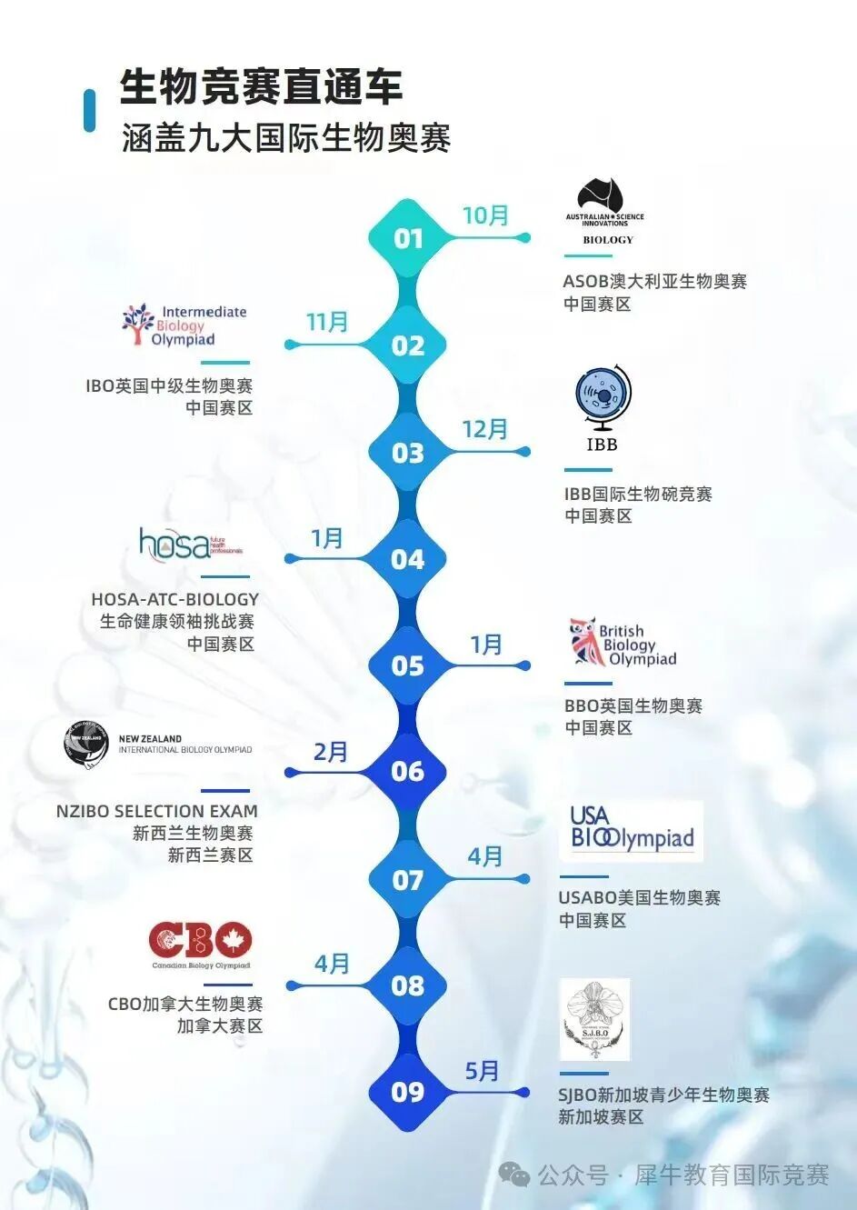 不管是想要冲刺今年USABO竞赛还是准备长线备考2027年USABO竞赛,犀牛都有针对性的课程为给各位备考的学生提供线上/线下的USABO竞赛培训课程。
