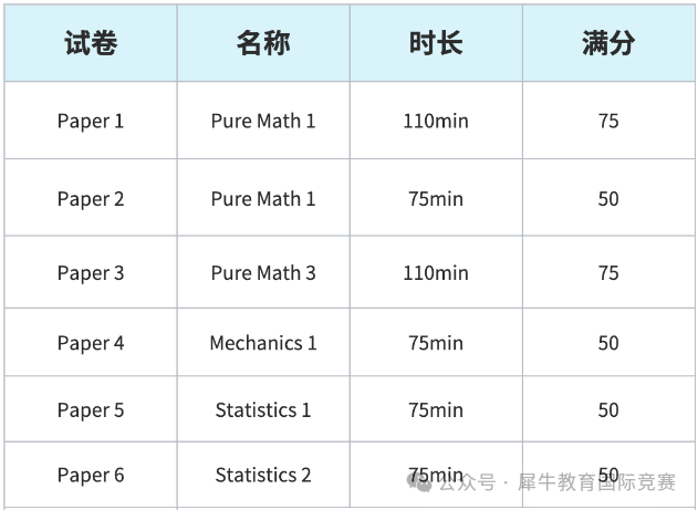 犀牛教育| CIE考试局 A-Level数学组合选课有哪几种?