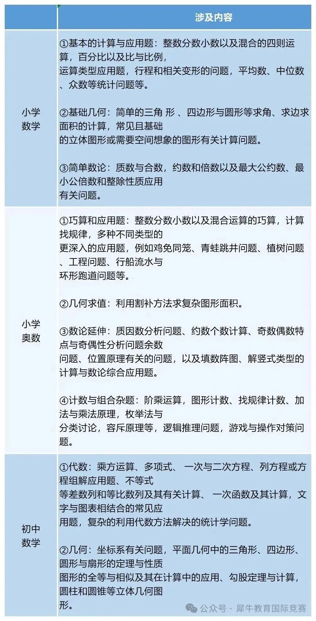 AMC8竞赛考点可以划分为三部分:小学数学知识、小学奥数知识以及初中数学知识,但总体考察还是以小学数学知识为主。