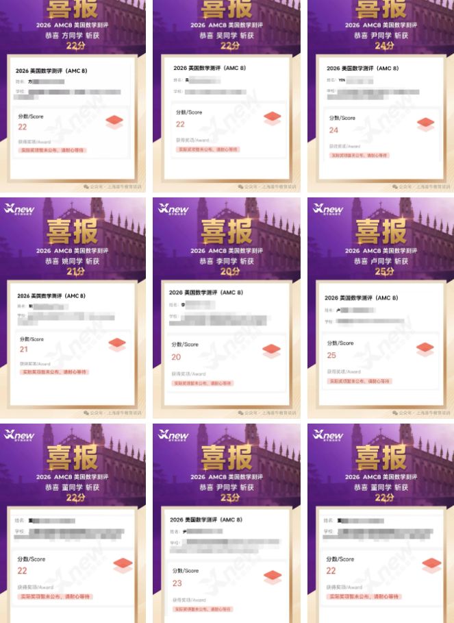 在刚刚落幕的26年AMC8竞赛中,犀牛教育AMC8学子高分频出,很多同学斩获高分奖项,这印证了犀牛的教育理念,只要找对方法,拿到奖项不是问题~