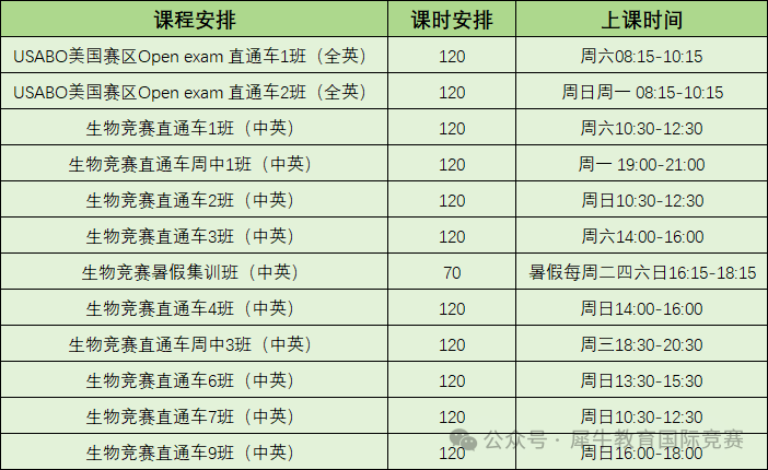 犀牛生物竞赛课程开班安排