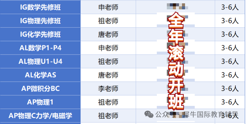 A-Level课程虽然只需要选3-4门,但单科知识深度超过国内高中。南京犀牛A-Level辅导开设A-Level数学、A-Level物理、A-Level化学、A-Level经济、A-Level生物等科目