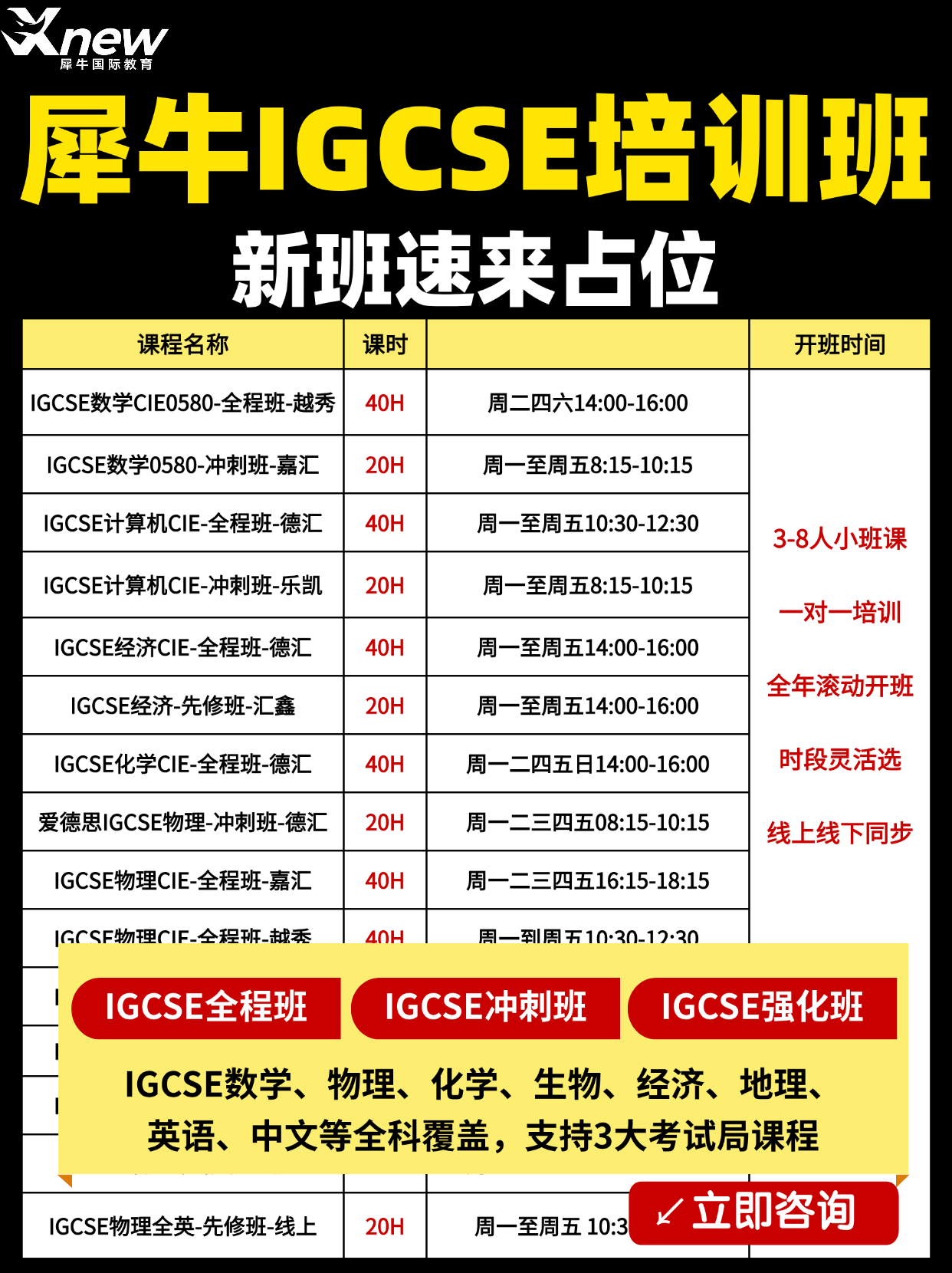 犀牛国际IGCSE培训课表: