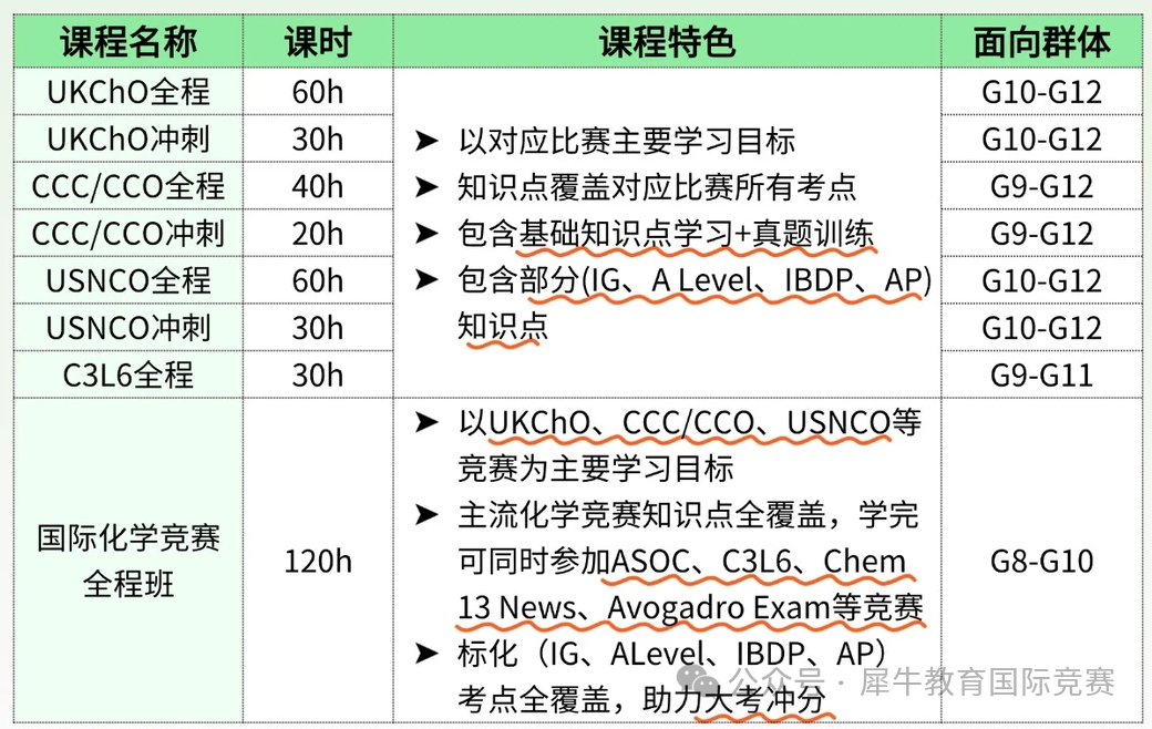 犀牛化学竞赛班型设置