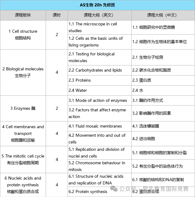 A-Level先修班课程大纲