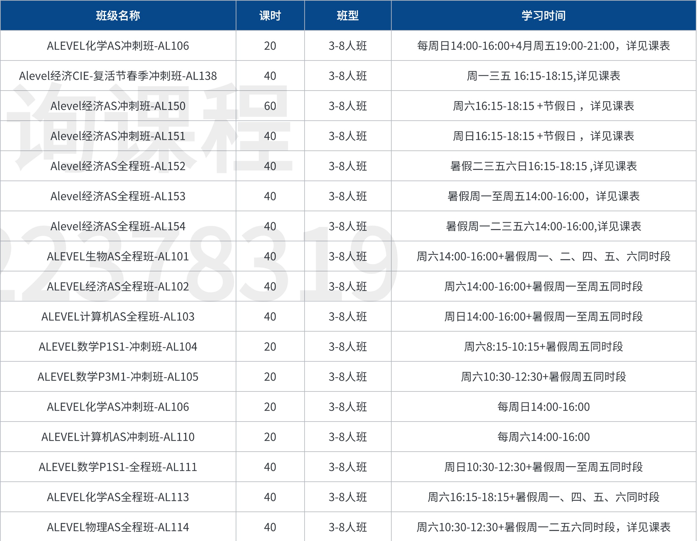 苏州犀牛教育Alevel/IGCSE/IB课程培训近期课表