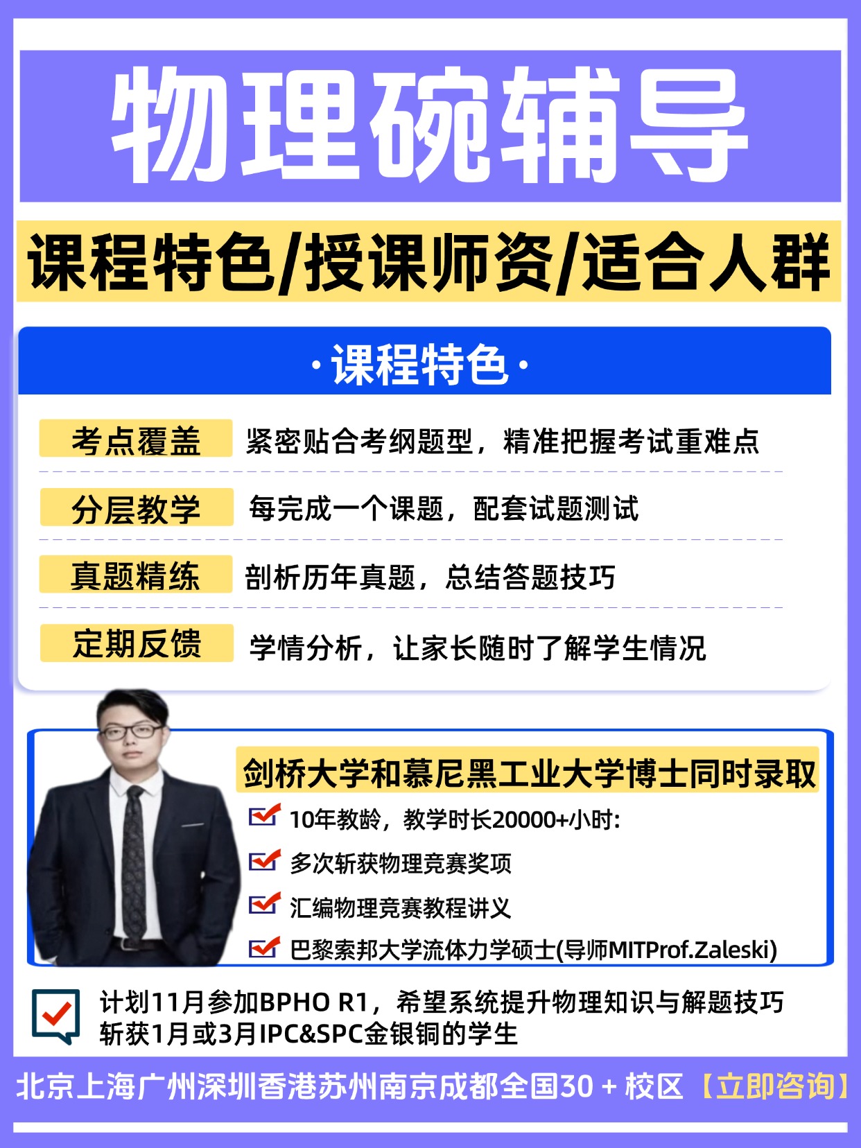 我们提供物理碗&BPhO竞赛直通车课程,从基础知识开始教学,全方位覆盖竞赛所需考点,除了助力竞赛拿奖之外,也有助于课内物理课程的学习。