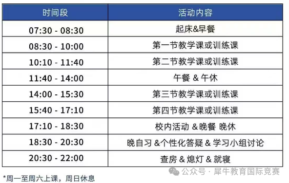 集训期间每日安排: