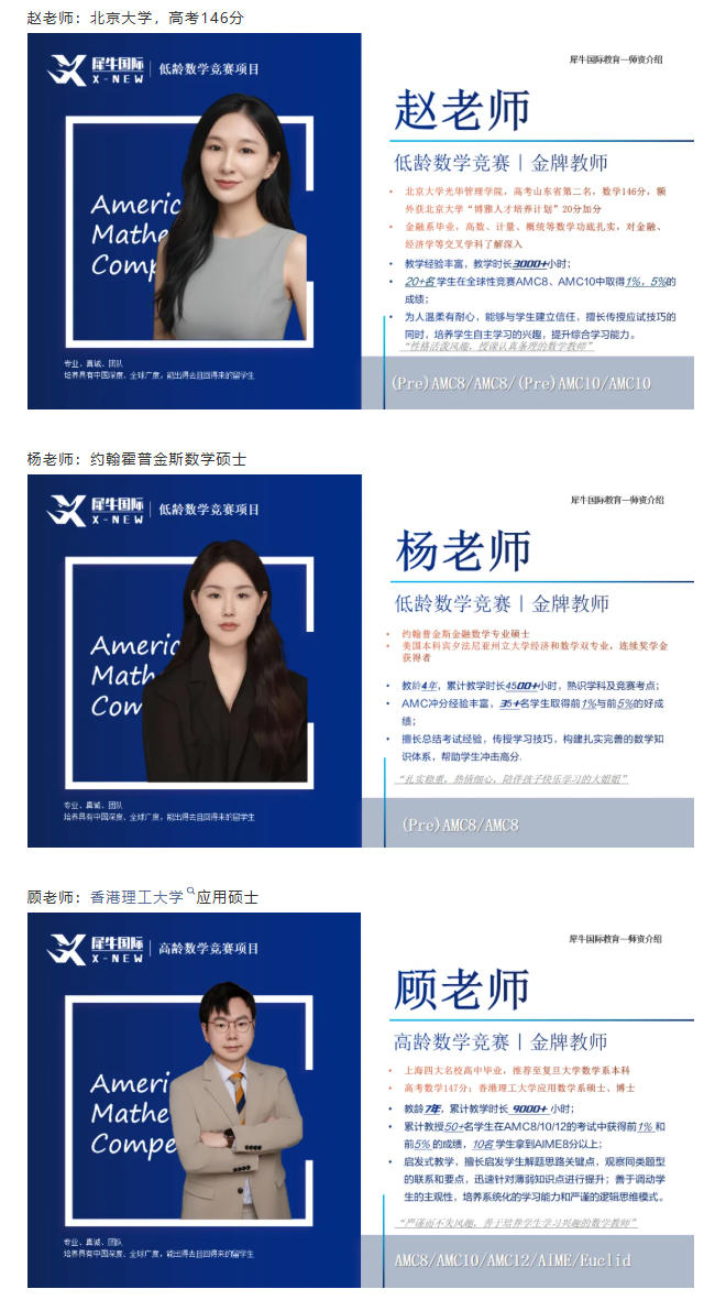 犀牛AMC8培训师资集合名校背景,丰富AMC8教学经验,高出分率!让家长放心。
