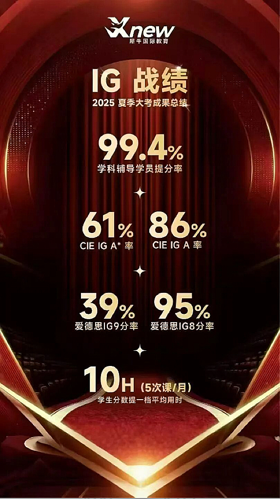 IG 科目覆盖面广,对后续国际课程学习影响深远,选对机构和课程尤为重要。犀牛凭借完善的科目设置、专业的教学和亮眼的成绩,帮助众多学生稳步提升,是 IG 学习路上的可靠选择。
