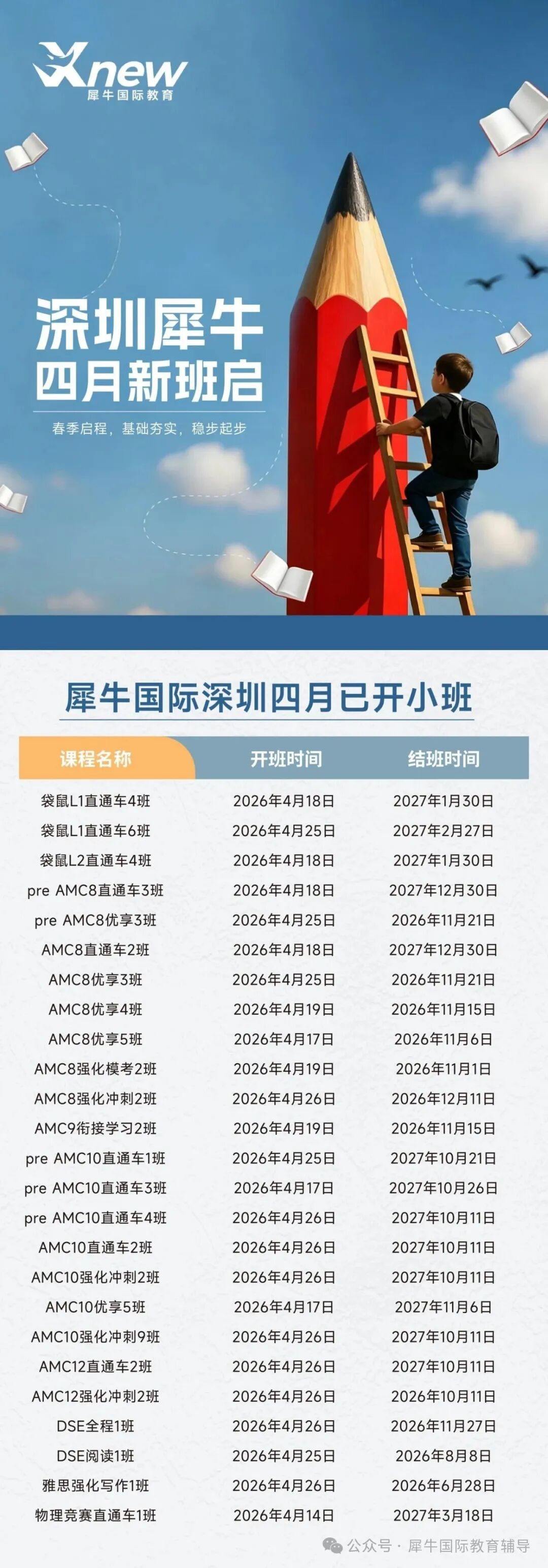 深圳犀牛教育4月课表发布,竞赛冲奖+国际课程抢位中...