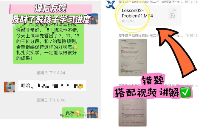 为学生配备了班主任老师和答疑老师,和家长及时沟通,反馈上课情况,帮助孩子答疑解惑,跟盯课后任务和批改作业等,让学生疑问的相关问题能够及时得到解决