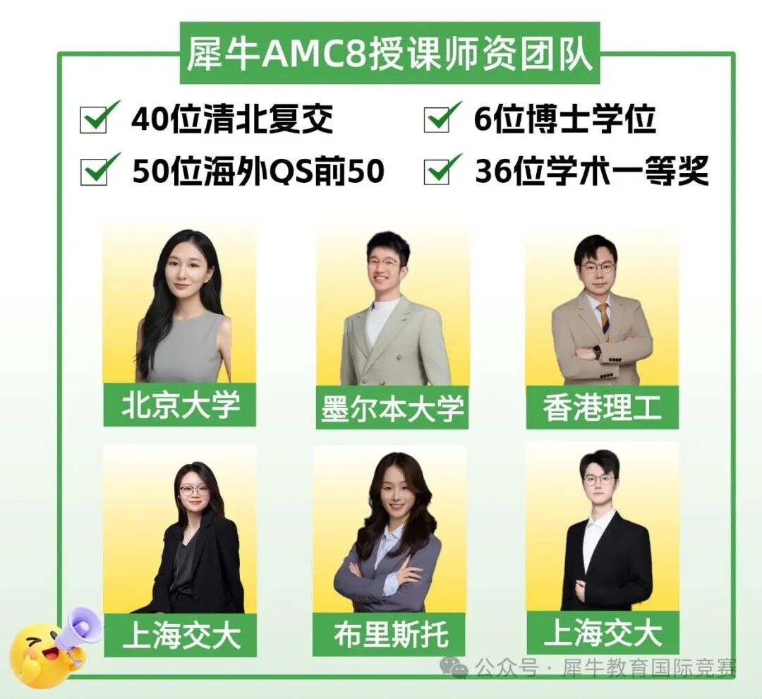 犀牛多年AMC8竞赛培训经验,2026年犀牛帮助近500,名学员获得AMC8竞赛高含金量奖项,55名学员获得AMC8竞赛满分!