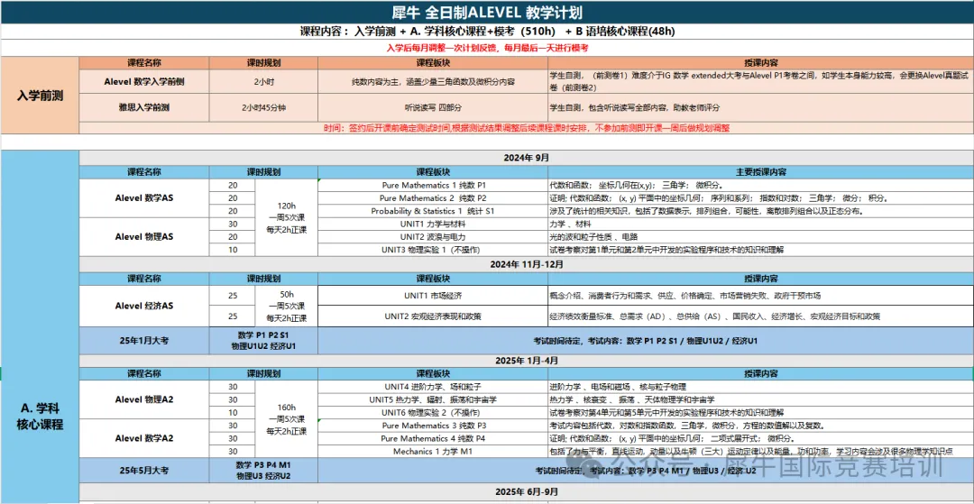 犀牛ALEVEL课程辅导覆盖全科,alevel脱产学员,经过前期沟通确定需求、目标,结合各科测试结果定制个人专属学习方案。