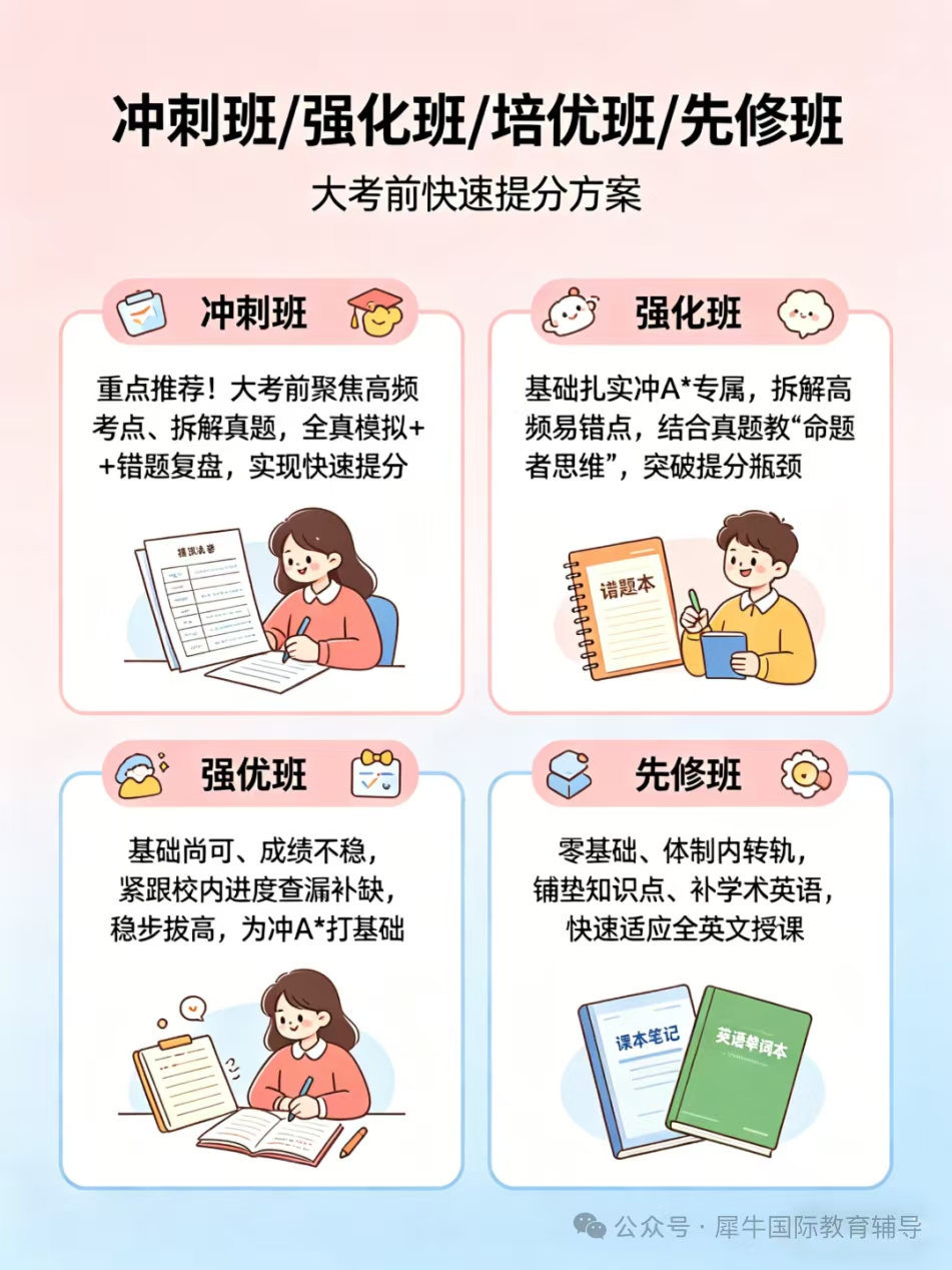 犀牛IGCSE课程培训适配全备考阶段,四大班型按需选,精准发力提分: