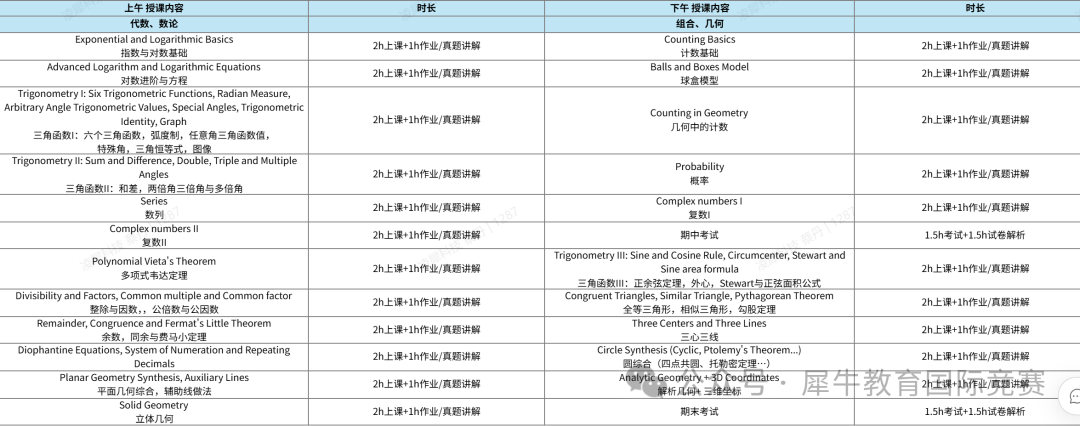 AMC12竞赛暑假集训封闭集训课程大纲