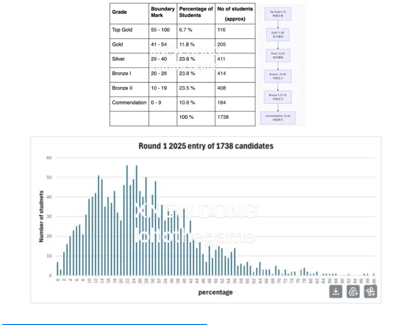 先看今年2025年BPhO物理竞赛奖项的分布图: