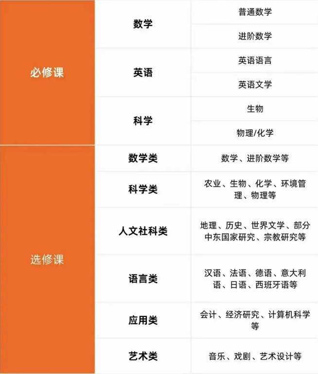 选修课:会计、商业研究、经济学、社会学、计算机等IGCSE课程比较热门的课程有以下这些:数学、物理、生物、化学、音乐、历史、地理、艺术与设计、信息和通信技术、经济学、环境管理
