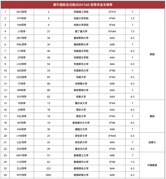 犀牛alevel全日制学生中,自2021年~2024年之间,毕业生超过200人,人均拿到5封offer,其中超过50%学员拿到英国G5院校offer。